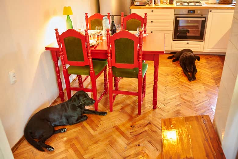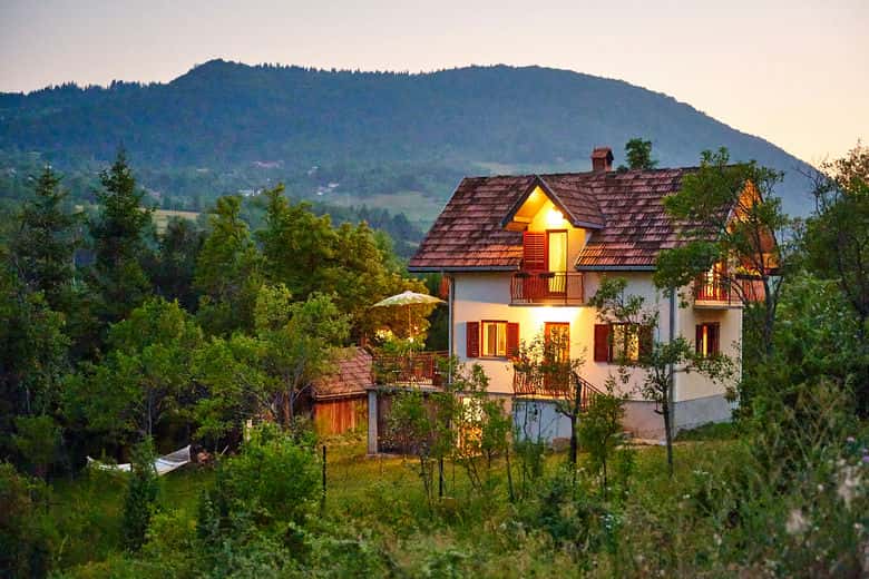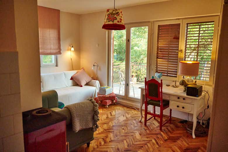 U prizemlju je kuhinja, trpezarija i dnevni boravak sa izlazom na veliku, prelepu terasu. Jedno kupatilo se nalazi u prizemlju a jedno kupatilo je na gornjem spratu. Kuća se greje sa Alfa Plam pećima na drva. U dnevnom boravku i u svakoj spavaćoj sobi je po jedna peć. Oba dva kupatila se greju električnim grejačima. U suterenu je veš mašina i mašina za sušenje vesa koje se mogu koristiti. Jedan mali izbor knjiga, igri, DVD/Blu-raja i CD-ova je takođe dostupan našim gostima.