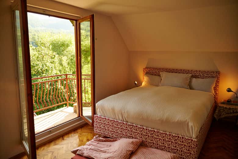 The ground floor consists of the kitchen, dining and living room area leading onto a lovely large terrace. There are two bathrooms, one on the ground the other on the top floor.The house is heated by Alfa Plam woodstoves, one each in the bedrooms and the downstairs living area. The bathrooms are heated with electric heaters. In the basement we have washing machine and dryer also for general use. A small selection of DVDs/Blue-rays, books, CDs and games is available for our guests.